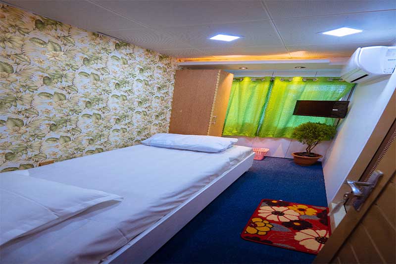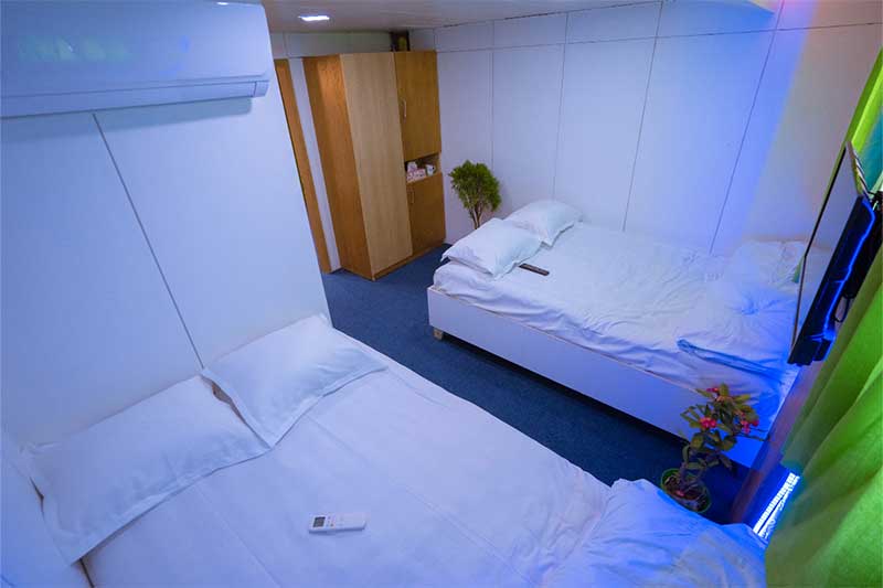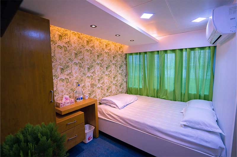MV The Wave offers luxury air-conditioned cabins with wide views, enclosed balconies for private wildlife watching, spacious dining and meeting areas serving delicious meals, modern attached bathrooms with hot and cold water, satellite TV, 24-hour tea and coffee service, comfortable beds, plenty of storage space, elegant decoration, nightly BBQ, and entertainment options.